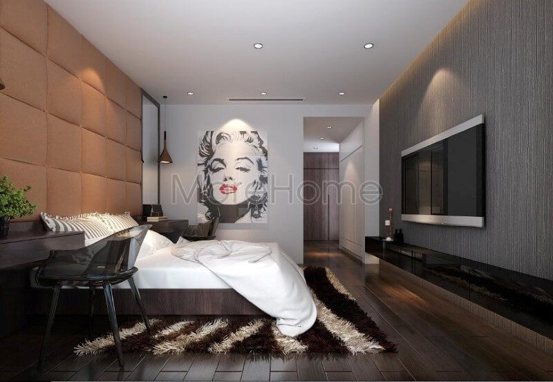 Mẫu giường ngủ chung cư cao cấp bọc da đầu giường màu nâu mang đến cảm giác sang trọng cho căn phòng ngủ của gia chủ