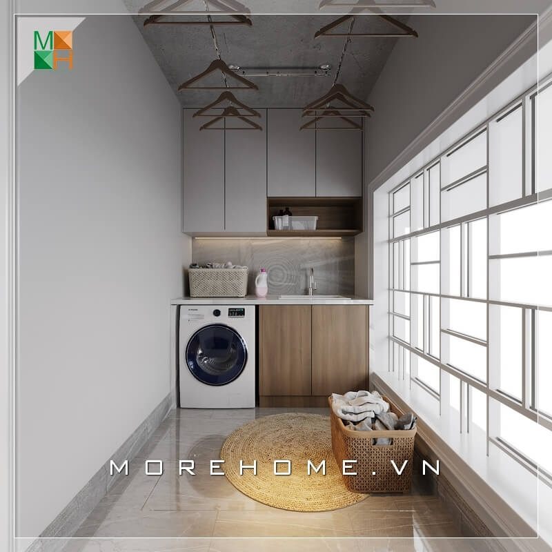 Sự tiện nghi trong lối thiết kế hiện đại, đơn giản mà sang trọng từ không gian phòng giặt, phơi đồ của biệt thự