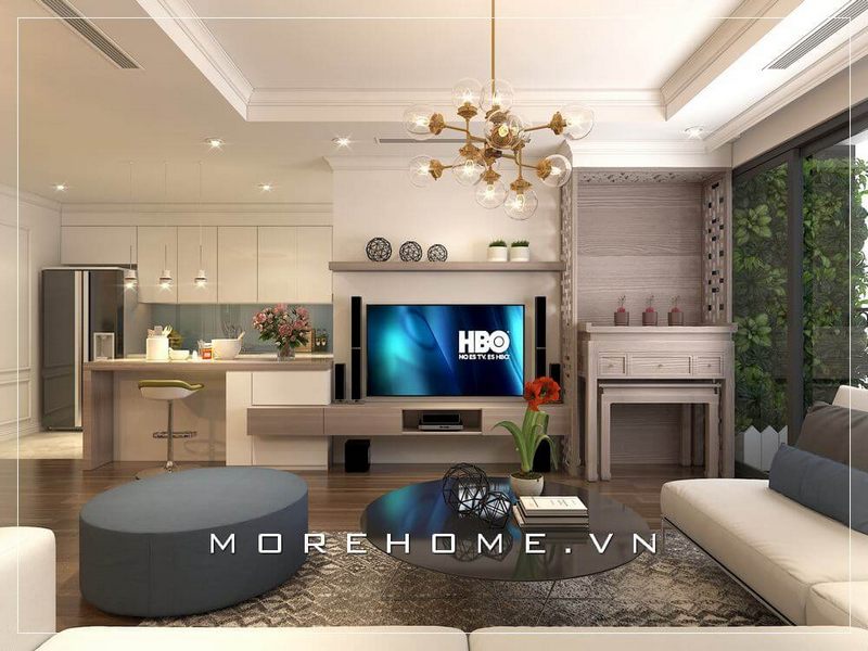 Mẫu bàn thờ hiện đại với thiết kế nhỏ gọn, chắc chắn được đóng tại xưởng gỗ nội thất MoreHome