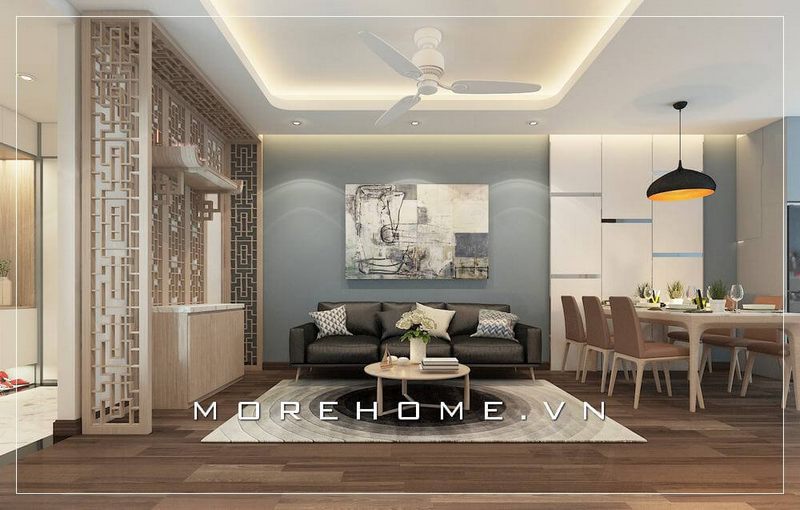 Mẫu thiết kế bàn thờ hiện đai kết hợp vách cnc gỗ màu tự nhiên tạo giúp tách biệt không gian,tạo vẻ đẹp sang trọng