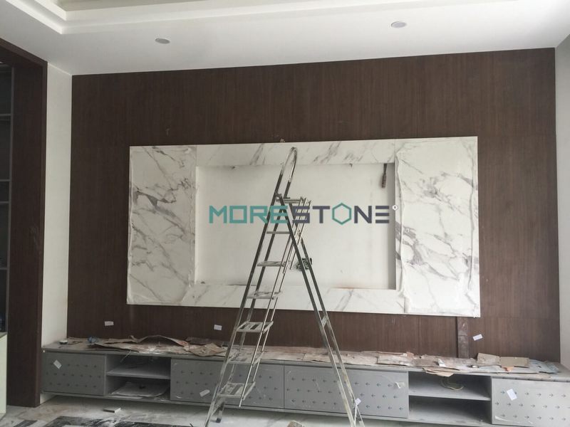 Không còn đơn điệu nơi tường phòng khách của ngôi nhà, lại tiện lợi vệ sinh, đẹp khỏe khoắn nếu bạn sử dụng đá ốp vân mây để trang trí với sự tư vấn của Morestone.